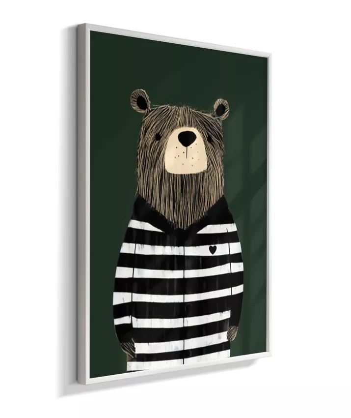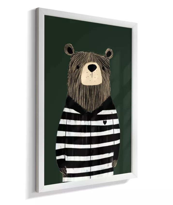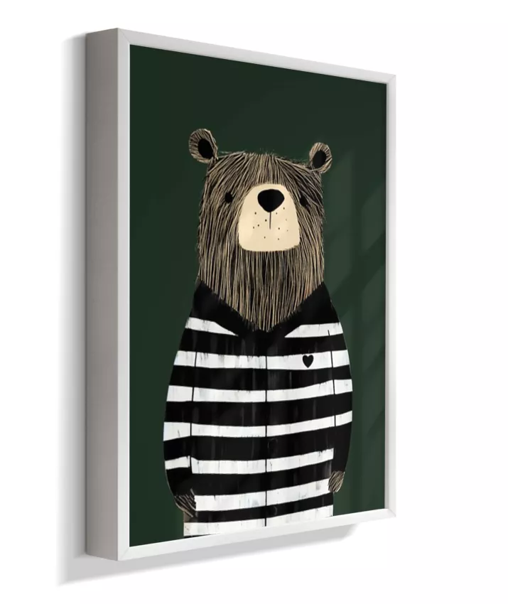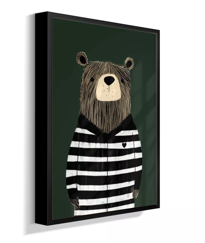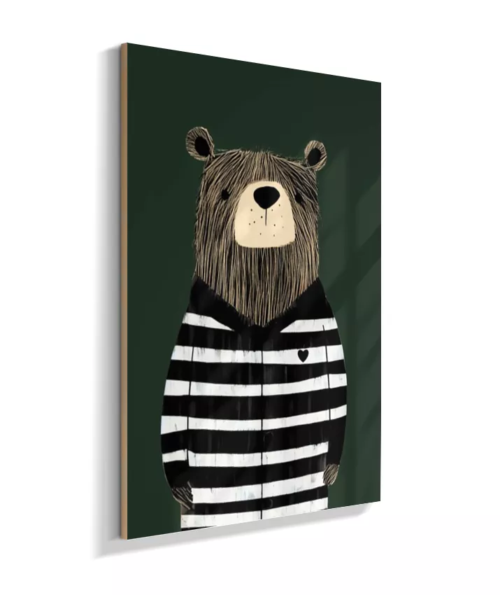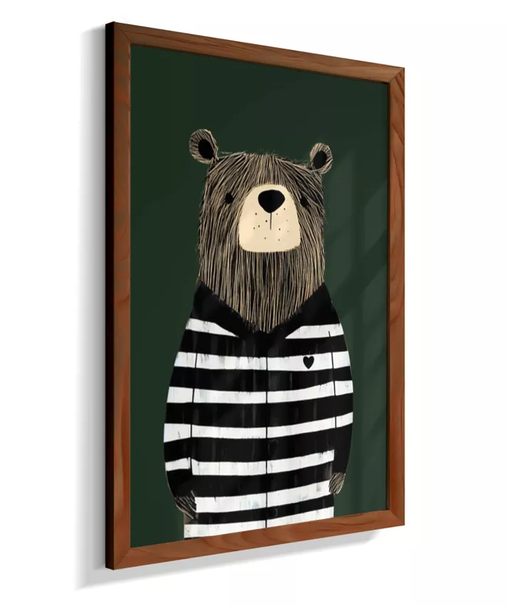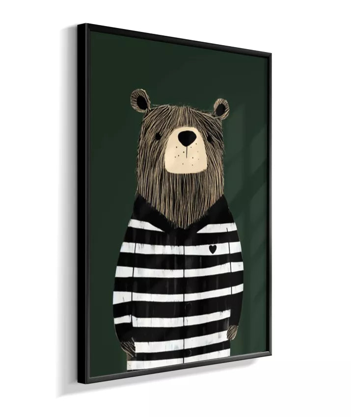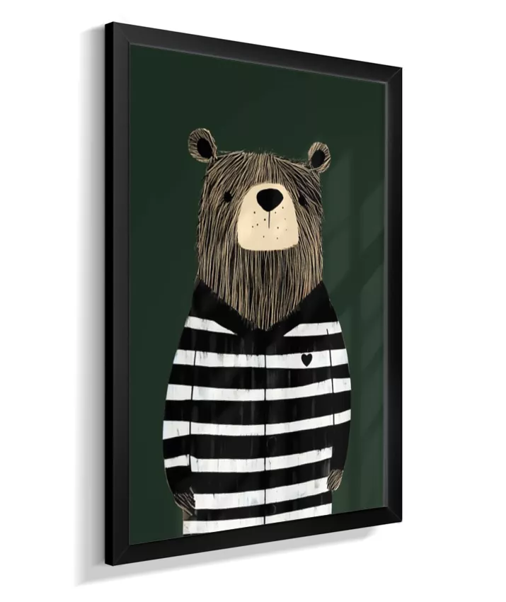 Urso com casaco listrado p/b (fundo verde)