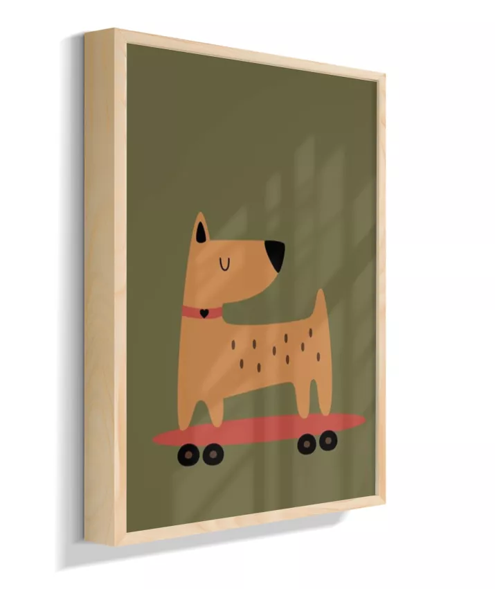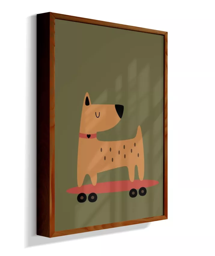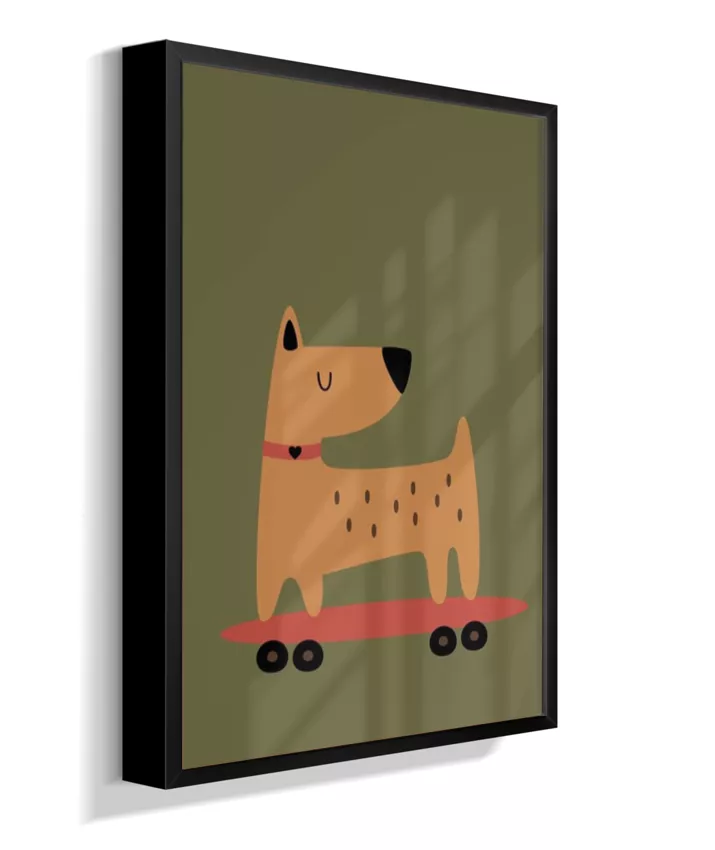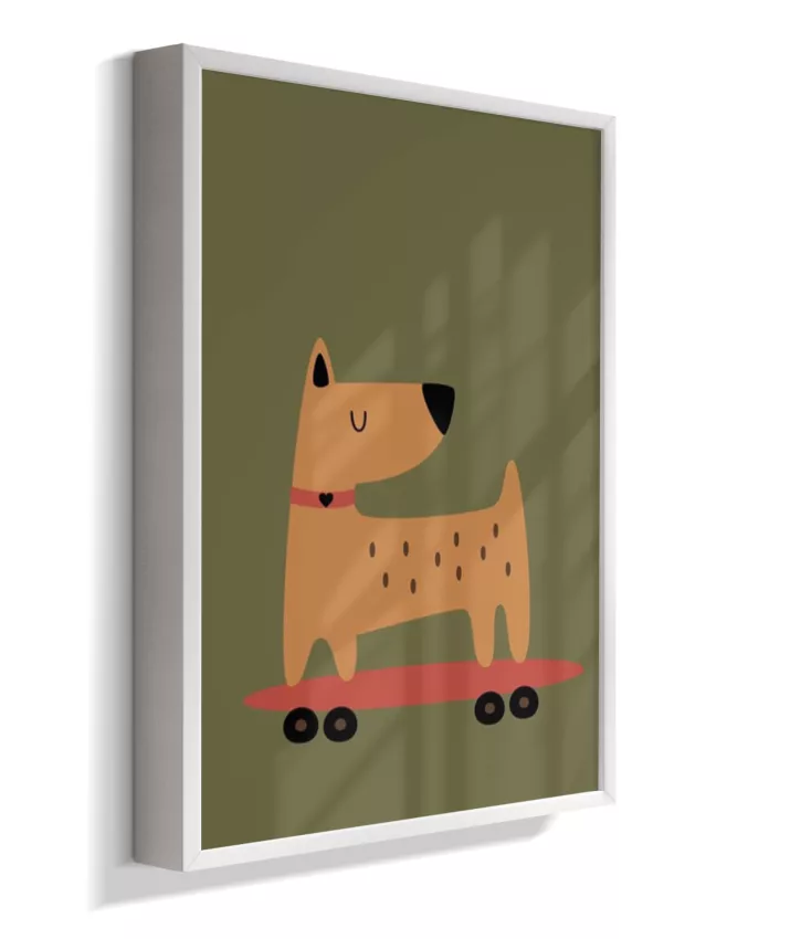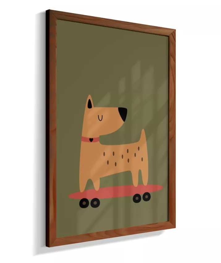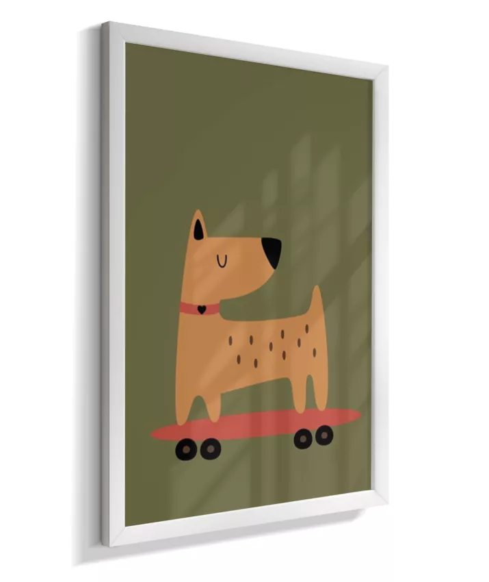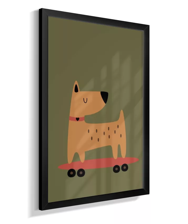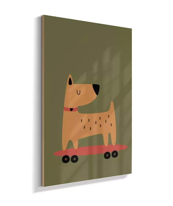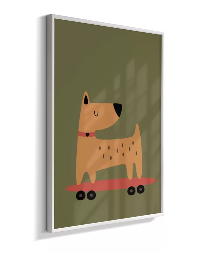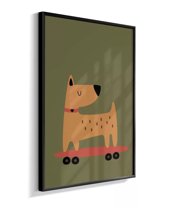 Cachorro no skate com coleira (fundo verde musgo)